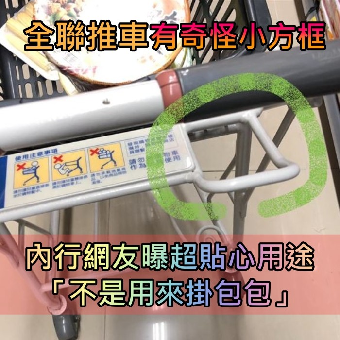 不是用來掛包包!全聯推車「小方框」真正用途是什麼? 內行網友曝「專為婆媽設計」:超貼心❤