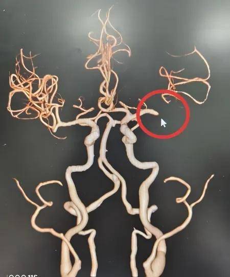 神經疾病中心急診值班醫生李明軒,憑藉豐富臨床經驗,第一時間判斷患者高度疑似急性腦卒中,影像科急診團隊完成頭頸部血管檢查(CTA),結果顯示:左側大腦中動脈M1段急性閉塞!這是給左腦供血的主幹血管,堵住了。