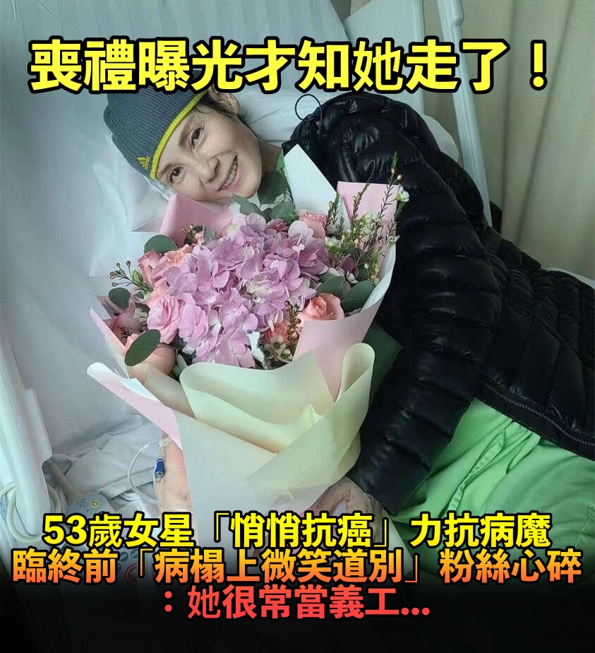 癌症復發離世!資深女星出殯「生前病榻照」引鼻酸 家屬「公開3年抗癌」不捨曝:她私下常當義工