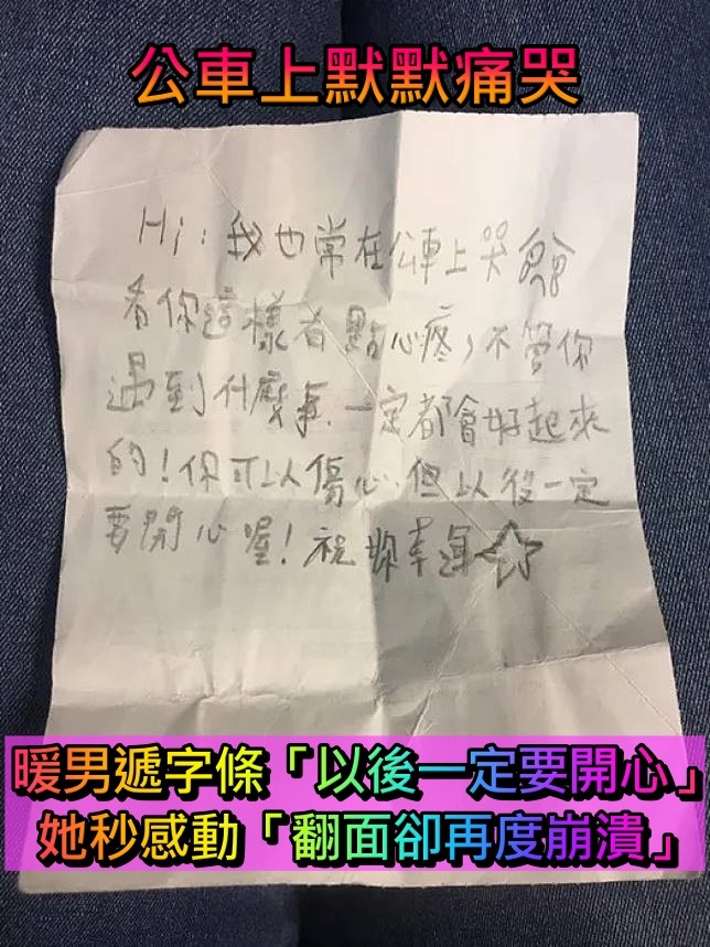公車上默默痛哭!暖男上前遞字條:「可以傷心但以後一定要開心」 看完瞬間感動「翻到背面再度崩潰」:更想哭了 嚕嚕米米 2025-12-26 檢舉 網友也紛紛表示:「好棒的人,加油」、「好溫暖的人,我也在這裡祝福妳生活越來越好哦」、「真是暖心!」真的太溫暖了~有時候真的只需要一句話,就可以拯救某個人的世界!來源:Dcard Advertisements 回首頁 2/2 Advertisements 猜你會喜歡 結婚9年不敢生!46歲朱孝天哽咽「怕把病遺傳給孩子」:別跟著我吃苦 淚謝妻子付出「只能等醫學進步」 交往7個月就閃婚!小17歲妻遭質疑「嫁沈玉琳是為了錢」 婚後負債3千萬「芽芽一句話」網看哭 投震撼彈!61歲夏靖庭「自爆吸毒20年」:我是更生人 勒戒回家「見一幕心碎」洗心革面 編輯精選推薦 More + 離婚18年!前夫早知方文琳罹癌「願意付手術費」 「1理由遭拒」爆她術後狀況 宛如來到精靈世界!面海民宿「露天浴池緊鄰懸崖」 坐上海邊鞦韆「化身唯美花仙子」夕陽背光超浪漫 旅美多年!資深女星「堅持落葉歸根」回國5天安詳離世 死前「砸600萬做1事」眾人淚目 22歲愛女病逝!資深男星「走不出喪女痛」留白長髮現身 掛骨灰項鍊「代女做1事」惹淚 晚年兒孫滿堂!73歲影壇大哥「拄拐杖現身」腳步蹣跚 兒子「全程攙扶不喊累」網羨:又帥又孝順 晚年隱居台東!68歲名主持失蹤「車內身亡」 伴侶悲曝「死前做1事」:還掛念著我 最新/賈靜雯深夜慟曝「她已離世」 淚PO合照喊:真的好愛你... 少女開的車!Toyota推出「女生專屬最Q車款」 一打開車門「粉嫩系內裝」女網友超心動:價格好佛心 彷彿來到霍格華茲!歐洲風「挑高木屋餐廳」聖誕氛圍滿滿 情人節出現「超巨大粉色花束」浪漫滿分❤️ 本土劇女星生了!7年前凍卵「終於來到我身邊」 歌手尪嗨喊:生個足球隊 15歲兒「睡夢中離世」!本土女星「送愛子火化」求做1事 「PO照圓滿了」:媽媽和你永不分開 14歲學霸被砍死!師生目睹「菜刀斷大動脈」當場喪命 行兇同學寫紙條:一定會殺你 以為只是小感冒!本土女星悲痛證實「他併發肺炎過世」 一度淚灑現場「後悔同意插管」 台語歌后慟別摯愛!告別式上認「早隱瞞病情」 道歉哭喊:原諒我簽放棄急救 父患巴金森氏症!八點檔女星淚崩「把他當兩歲孩子寵」... 「他眼前都蟲子」連水都不敢喝 趕在40歲前閃婚!八點檔女星「宣布嫁給他」 尪驚人身分曝「媒人是柯叔元」 大咖男星妹妹出嫁!全身金飾「曾獲近千萬豪宅」嫁妝豐厚 兄妹長超像「一看媽媽懂了」:基因強大 婚變尪落跑!單親媽「獨扛千萬債養孩」到處躲黑道 「一開口驚艷眾人」熬成台灣歌后 快養不起小孩!本土男星「開計程車、斜槓房仲」 突宣布「離開台灣」:演藝圈沒工作 65歲男星獨居暴斃!大咖女星放下恩怨「送前夫最後一程」 昔遭動手6年嘆「死者為大」 弟成植物人、姊猝逝!玉女歌手「遭前夫設套」騙走娘家房產 「狠斬16年婚姻」近況曝 24歲兒失明!于美人爆「他在飯店掃廁所」維生 不盼紅包只求「別再花我的錢」 把城堡塞進魚缸裡!神人手工打造「最高顏值的夢幻魚缸」 晚上亮燈「秒變輝煌宮殿」賞魚也浪漫❤️ 李英愛輸了!73歲富商尪「超凍齡像40壯年」站一起超登對 「不時甜蜜咬耳朵」網羨慕 車站又傳濺血!23歲男「持刀抵頸」遭警圍捕
