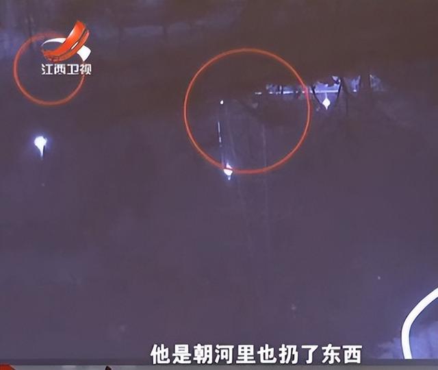 這名男人多次向河中扔不明物體,並且看起來非常的慌亂。