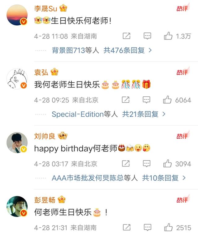 除此之外,李晟、彭昱暢、袁弘等幾位知名藝人,也在評論區留言祝福,還真是今昔不如往日,世態炎涼也不過如此了。