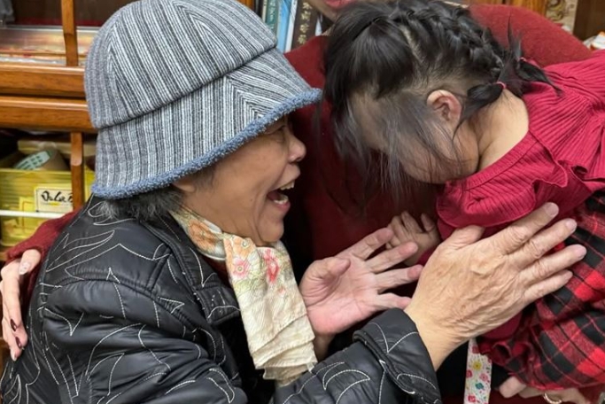 另一張照片裡,奶奶的目光自始至終都停留在孫女與曾孫女身上,眼中盡是滿滿的愛與不捨。