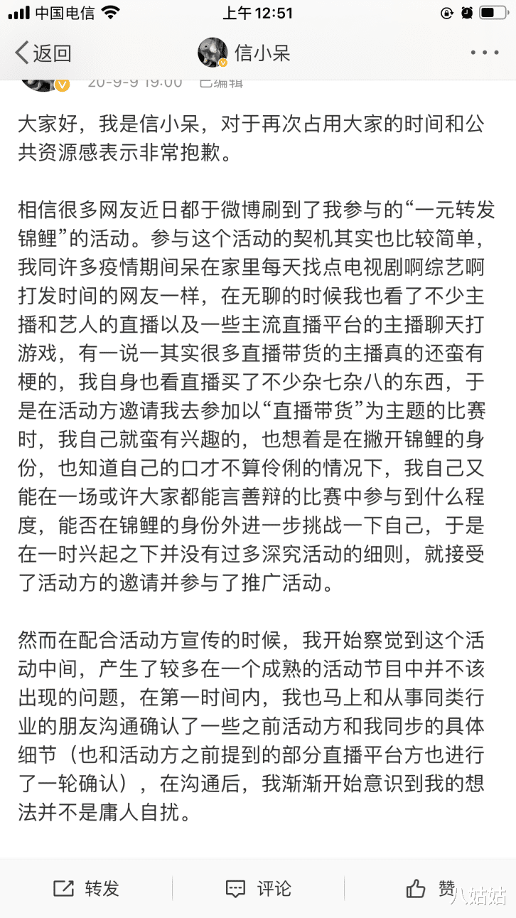 信小呆因經驗不足沒識破,她為自己的過失發了道歉信。