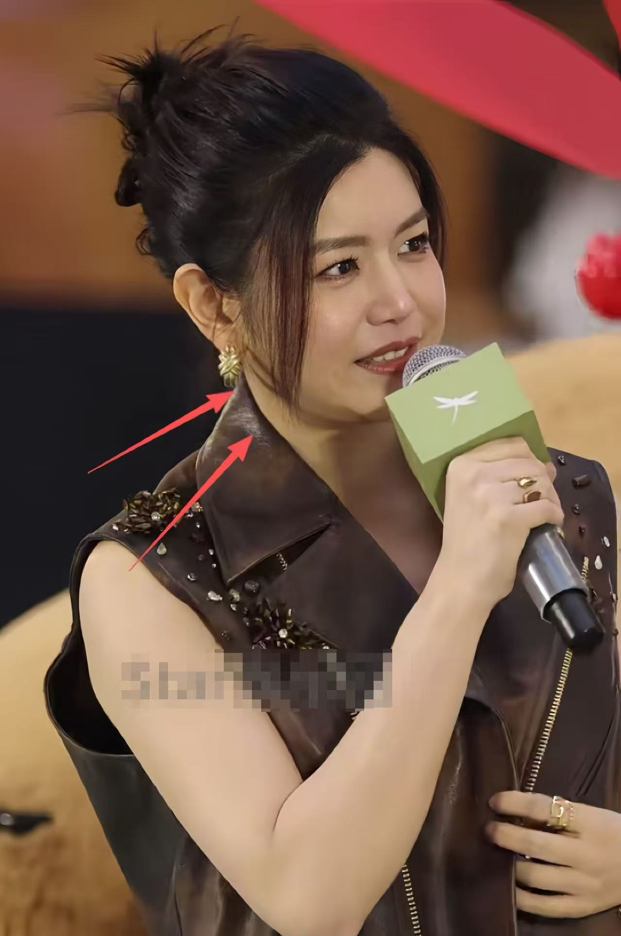 其實從遠處看倪虹潔的面部狀態還算是挺不錯,因為有打光的緣故,面部平整皮膚嫩白,看著簡直像20多歲的少女。