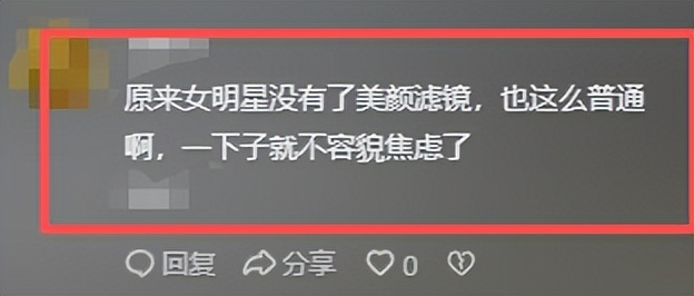 不少網友嘲諷,看來女明星脫離了美顏濾鏡後,也是很普通的中年人,瞬間容貌焦慮就緩解了很多。