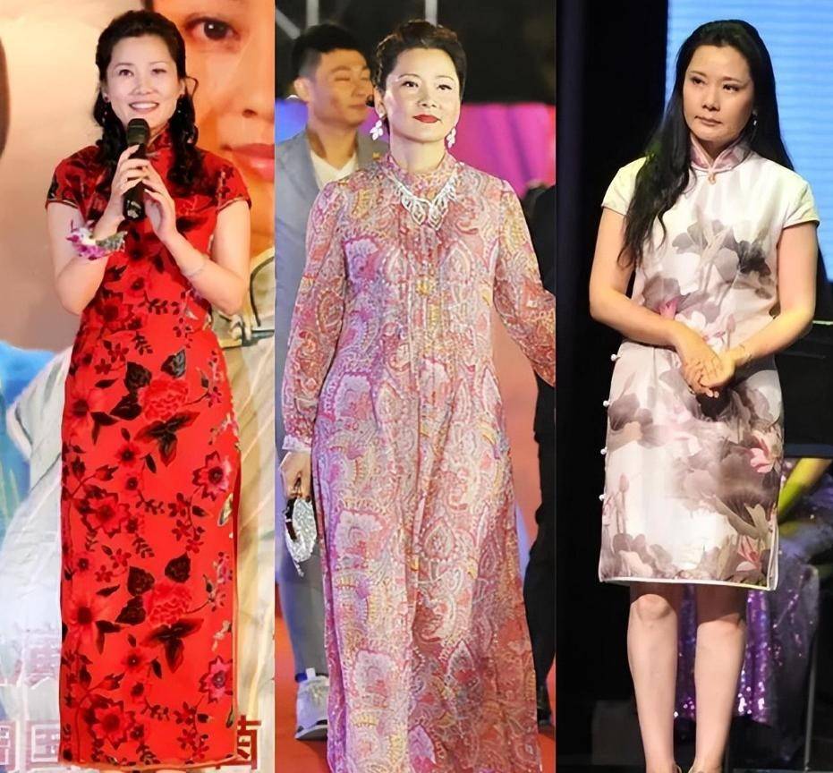 照片中有三套穿搭,左邊的是旗袍,底色是大紅色,十分鮮艷,上邊印有花朵圖案,增添了一份神韻,腰部略微收緊,將纖細腰肢展現出來,旗袍側面是開叉的,這樣一來,不管是走路時還是靜靜站著,都可以看到腿部線條。最右側也是旗袍,只是長度在膝蓋位置,前身部分也印有圖案,彷彿一幅水墨畫,非常大氣,充分展現東方女性的獨特魅力。