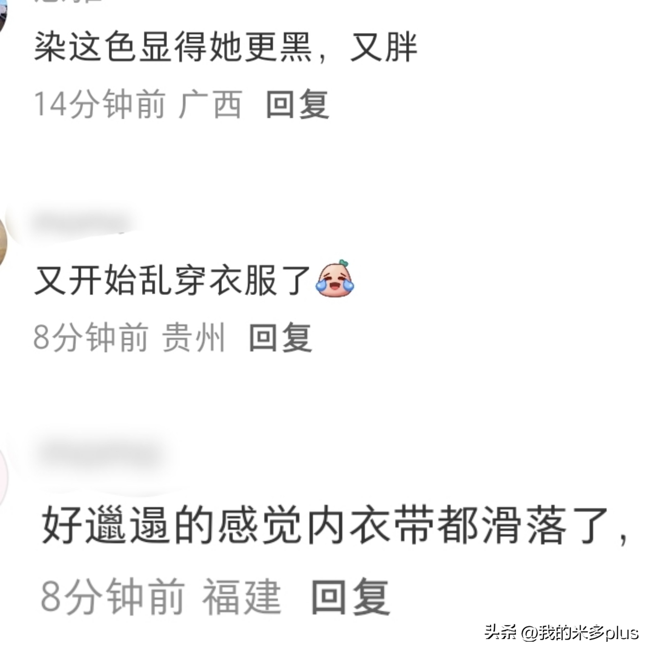 網友看到何潔的狀態,直言染這頭髮顯得她更黑,更胖,私底下又開始亂穿衣服了,給人一種好邋遢的感覺。
