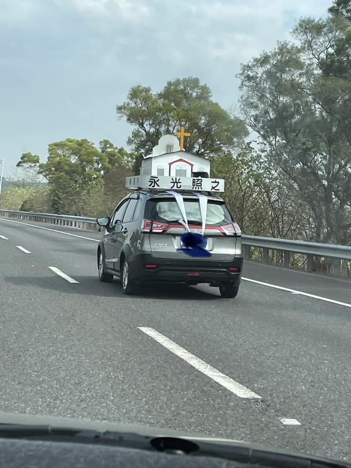 網友看了照片紛紛留言笑說:「現在的移動不必法術和魔術,麻瓜也能移」、「嚇死人的角度,以為整棟大樓都一起移動」、「跑得了和尚,更跑得了廟」、「卡西法,把這些金紙吃掉」、「我家的土地公廟也是用這種的」、「還以為頂樓加蓋,原來是背景亂入」、「車一直跑,拜完要插香有難度」,也有網友分享曾在路上看到車頂載著教堂的畫面。