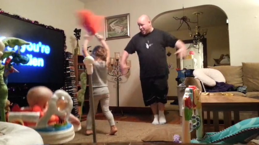 這位爸爸簡直在開演唱會啊!YO~YO~跟著音樂嗨起來!準備好舞動你的身體了嗎?