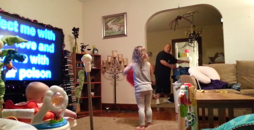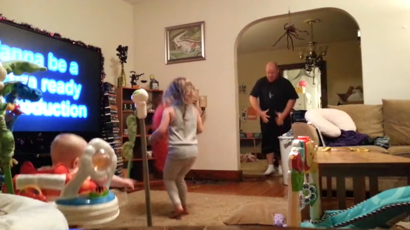 網友PO出的這段影片中,只見小女孩在客廳隨著音樂盡情扭動、搖擺,一旁的小北鼻好像也嗨了!天才老爸把東西放下後,竟然也脖子扭扭、屁股扭扭...