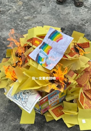 搶救半小時,兒子恢復心跳了,但仍處於昏迷狀態,身為母親的Jasmine,也哽咽表示「兒子很努力堅持」,無奈經過一周的搶救,最終兒子還是沒能撐過去,直到17日下午,兒子在氧氣供足的情況下停止了呼吸心跳。對於寶貝的離去,夫妻倆透過一張又一張的照片、色彩繽紛的氣球,再把數張畫作連同金紙燒成灰燼,表達對兒子的無限想念。Jasmine在替兒子舉辦告別式後,回到家收拾遺物時一度情緒崩潰,看著許多兒子來不及使用的玩具心疼不已…「以後想你就看天空,你也要看到媽咪啊。」