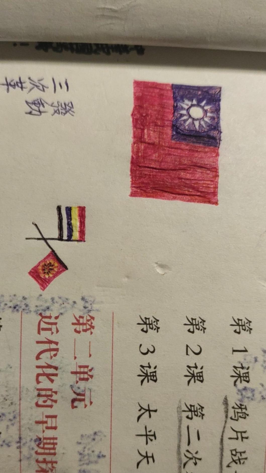 大膽!陸國中生「在課本畫台國旗」繁體字寫國歌 家長一看「右下角8字」嚇傻:被叫學校了