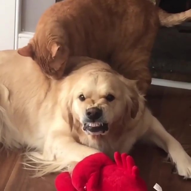 明明很不開心,卻又沒辦法真的發火...有遇過這種狀況的話,一定會覺得快憋壞了,偏偏還是得忍、忍、忍!國外有隻金金也面臨這樣的尷尬局面,而讓牠「敢怒不敢言」的就是喵皇...