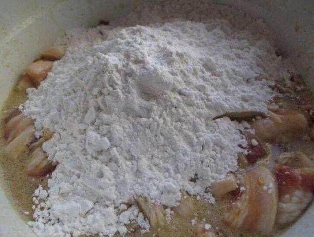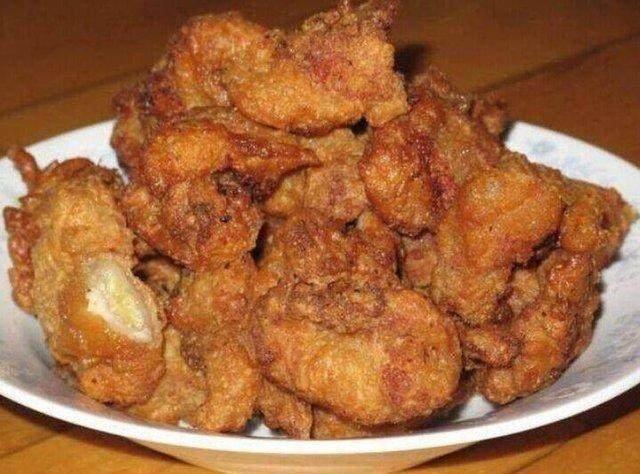 起鍋燒油,燒到大概七八成熱的時候,把拌好的五花肉放到鍋裡面開始炸,炸到略微發黃就出鍋,再等一會,將炸的微黃的五花肉再次下鍋,炸至金黃就可以出鍋了