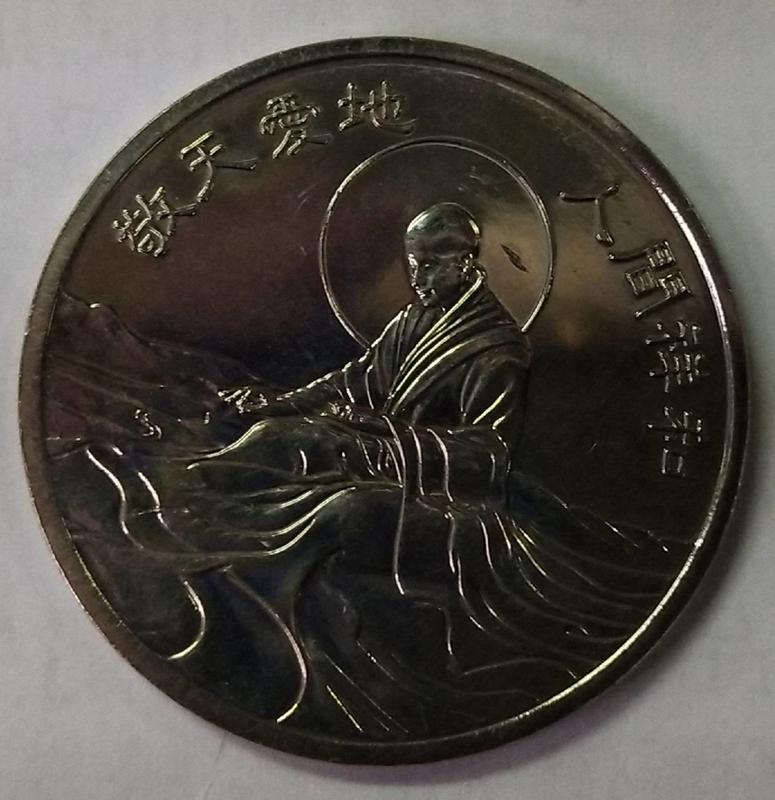 一名網友就在「爆怨公社」中發文表示,自己在買東西的時候收到了一個奇怪的硬幣,上面畫著一個穿著僧衣的光頭僧人,似乎正在低頭唸經,硬幣上方寫著「敬天愛地,人間祥和」,他疑惑問大家:「第一次看到.....無法理解有何價值?」