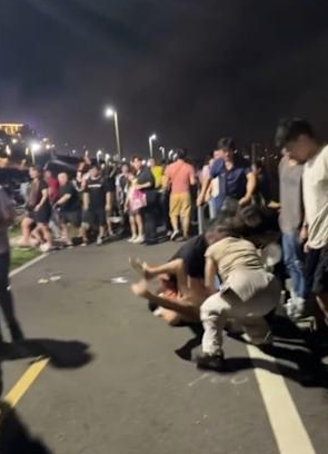 沒想到美麗的煙火盛會竟爆發衝突。晚間8點左右,在忠孝碼頭發生了一起嚴重的暴力事件。一名25歲林姓男子與22歲盧姓女子,和另一組51歲吳姓男子、50歲吳姓女子,因搶奪觀賞位置而發生爭執。雙方在煙火施放結束後,情緒更加激動,演變成激烈的肢體衝突。現場民眾拍攝的畫面顯示,兩名男子在地上扭打,女子間更是上演「扯髮大戰」,甚至當場有頭髮被扯落。