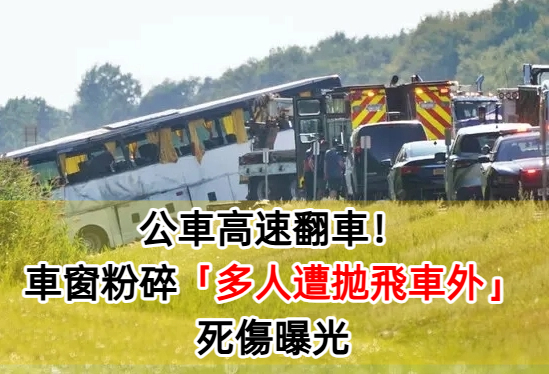 快訊/公車高速翻車!車窗粉碎「多人遭拋飛車外」死傷曝光