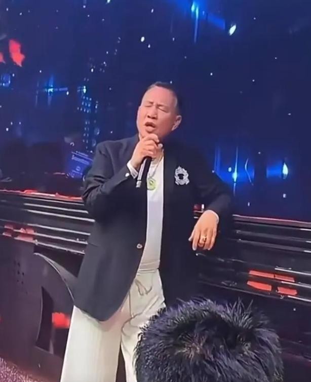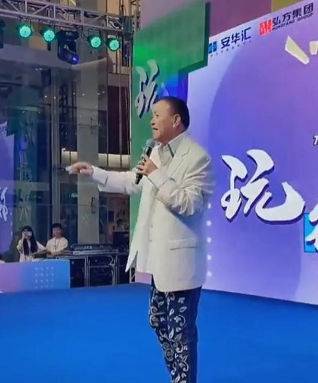一個68歲的老頭穿著一身看著有點舊的西裝,腳上的皮鞋邊都開了膠,他手裡緊緊抓著話筒,唱著幾十年前的老歌。