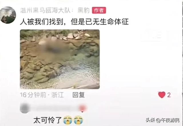 直到5月7日的下午2點40分左右,黑馬救援隊第六小組發消息稱,邱燁峰已經被找到了,但是已經沒有生命體征了。
