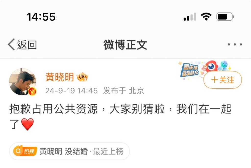 大陸當紅男星黃曉明與女星楊穎(Angelababy)過去曾被封為演藝圈的金童玉女,王子公主結合如童話般的婚姻為人津津樂道,然而兩人卻在2022年宣布離婚,消息一出令許多粉絲都感到相當心碎,甚至直呼:「再也不相信愛情了!」離婚後的黃曉明去年大方認愛小14歲的網紅葉珂,如今傳出黃曉明再度當爸了!?