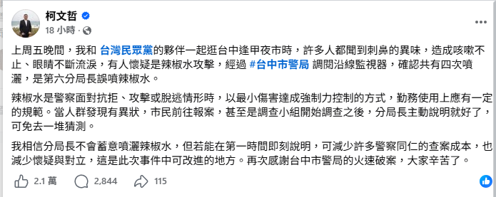 快訊/大逆轉!柯文哲遭噴辣椒水「兇手竟然是他」 Elmo 2026-04-21 檢舉 豈料下午案情急轉直下,真相曝光後所有人都傻眼了。原來當天是分局長周俊銘在測試有問題的辣椒水噴霧器,因為操作失誤才導致這場誤會。網友得知後紛紛留言:「這也太瞎了吧」、「警察自己搞烏龍還讓人誤會」、「分局長出包也是挺扯的」、「難怪查不到可疑人士」、「這劇本根本想不到」。警方依照相關規定將周俊銘記過兩次,並調任非主管職務。圖片來源:《三立新聞網》 Advertisements 圖片來源:柯文哲臉書影片來源:TVBS NEWS資料來源:《TVBS》 Advertisements 回首頁 2/2 Advertisements 猜你會喜歡 綠營戰將「被爆毒駕判刑」!民進黨火速開鍘:「不予提名...」 小10歲愛妻好正!吳怡農妻子「竟是超美瑜珈老師」 靠好友認識真命天女「精緻五官曝光」 政治家族魔咒?前總統外孫女認了「罹癌症末期」:我只剩一年可活 編輯精選推薦 More + 44歲許維恩罹乳癌!醫示警「3日常用品」易致癌:別碰才能保命 台灣大咖病逝「享壽83歲」!周遊告別式痛哭「認婚內出軌」:兒子很恨我... 吊車大王擁第5任妻?他羞曝內幕「1招讓大老婆願離婚」 本土劇女星生了!7年前凍卵「終於來到我身邊」 歌手尪嗨喊:生個足球隊 千萬起家厝賣掉了!張秀卿認手頭緊「為女兒月花20萬」 她超爭氣「進軍美國」成台灣之光 別人對你說謝謝!不要說「不客氣」 教你3種「高情商的回應方式」 才罹血癌康復!沈玉琳自爆「多重器官衰竭」胯下大爆血 已交代遺言「不准小17歲妻改嫁」 功德圓滿了!台語歌后「悲曝他離世」享壽95歲 淚喊:去當快樂的神仙吧... 最新/3度中風送醫!資深男星爆離婚「斷50年髮妻」 「砸1億淨身出戶」家族爆紛爭 晚年隱居台東!68歲名主持失蹤「車內身亡」 伴侶悲曝「死前做1事」:還掛念著我 15歲兒「睡夢中離世」!本土女星「送愛子火化」求做1事 「PO照圓滿了」:媽媽和你永不分開 出大事了!伊朗出手「白宮緊急會議」 美國「11名大咖失蹤身亡」 送別亡夫3年!丁強遺孀「不投靠美國兒女」 獨留台灣「76歲拒健康檢查」原因曝光 男子吃自助餐「浪費食物」被罰2400元,不吵不鬧付錢離開,老闆慌了:快追回來 弟成植物人、姊猝逝!玉女歌手「遭前夫設套」騙走娘家房產 「狠斬16年婚姻」近況曝 一男一女麥地私會「全被拍」!下秒按耐不住「往樹林走」鑽進排水溝 22歲愛女病逝!資深男星「走不出喪女痛」留白長髮現身 掛骨灰項鍊「代女做1事」惹淚 最嚴禁菸令上路!「這年後出生者」終身不得買菸 24歲兒失明!于美人爆「他在飯店掃廁所」維生 不盼紅包只求「別再花我的錢」 離婚11年!洪榮宏愛女結婚「終破冰前妻」 「2爸爸牽她進場」催淚畫面曝 空窗多年!68歲陳美鳳突羞認「身邊有個他」 40年前就認識「遭男方母親拆散」 趕在40歲前閃婚!八點檔女星「宣布嫁給他」 尪驚人身分曝「媒人是柯叔元」 最新/賈靜雯深夜慟曝「她已離世」 淚PO合照喊:真的好愛你... 85歲失智父身亡!林葉亭突宣布「皈依佛門」 遇大師「開示一番話」忍不住淚崩 台語歌后慟別摯愛!告別式上認「早隱瞞病情」 道歉哭喊:原諒我簽放棄急救