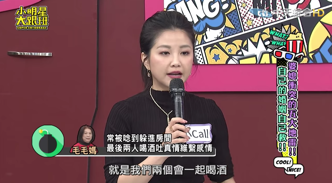 然而就算嘴上這麼說,婆婆還是有接受不到的事情,那就是小Call實在太會碎念,像是會嫌棄她煮飯太鹹,或是不滿她都把冰箱塞得滿滿的,甚至有一次還把她氣到乾脆躲進房裡,連晚飯也不煮了,於是小Call只好低聲下氣,跑去邀請婆婆外出用餐,回到家後再一起喝酒,這才終於將心結解開。聽完2人的相處方式,在場的藝人雖然也覺得小Call膽子有夠大,但還是很羨慕這如同母女般親密的婆媳關係。