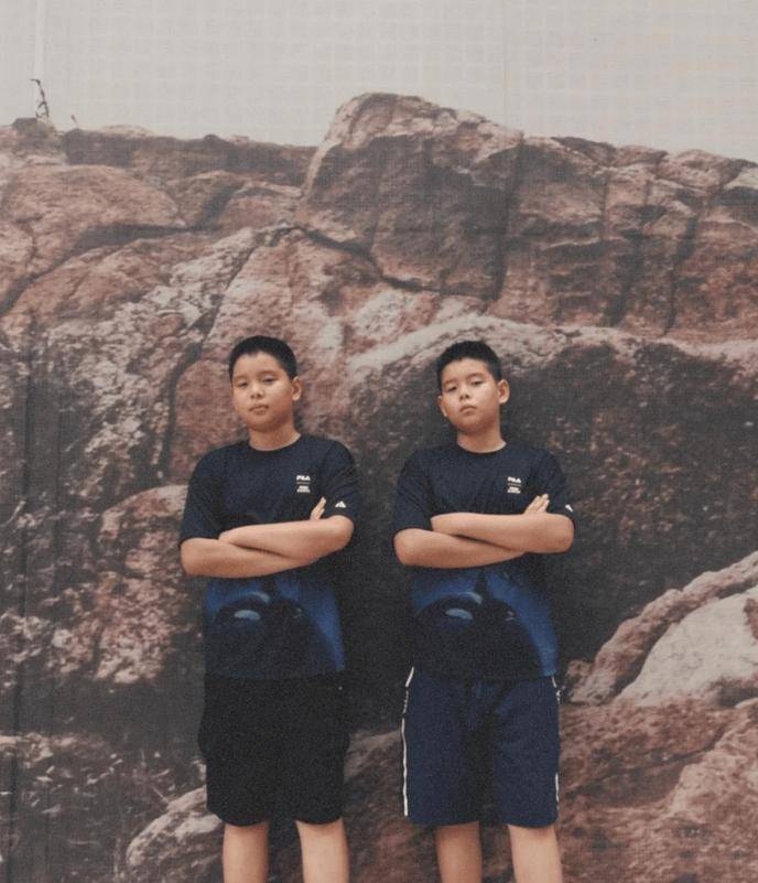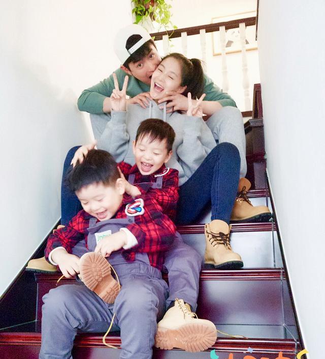 他們的一對雙胞胎兒子,都長得特別高,一個個都變成大帥哥,一家人幸福得不得了!