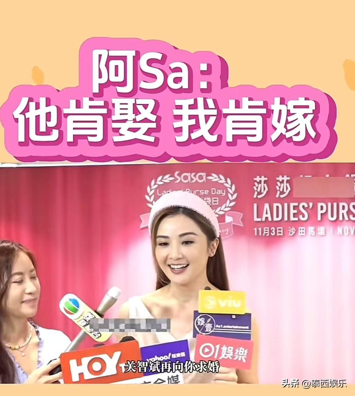 昨日阿Sa美美地出席活動,台媒也是沒放過這次詢問的機會,採訪時專門提了關智斌;「很多網民關注關智斌演唱會再次向你求婚,你什麼時候答應他?」