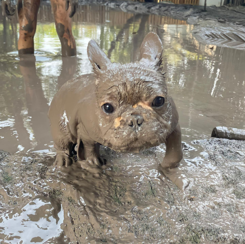 萌Q法鬥「嗨跳泥坑」爽泡泥漿浴!整隻起來「灰到發亮」主人笑:怎麼變河馬...