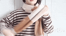 先把圍巾在脖子上鬆鬆的繞一圈,取一邊塞進對面的裡層,留出小洞,把另一邊圍巾由里側穿過這個小洞,最後整理整理就OK啦~