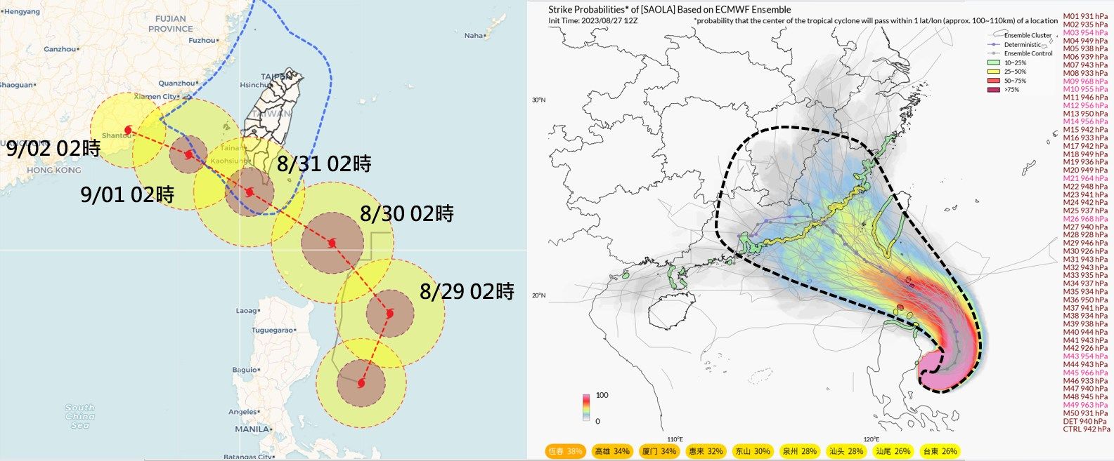 據《ETtoday》報導,蘇拉颱風增強為強烈颱風,雖然因為內部環流影響,一直在南邊打轉,有漸漸往南修正的趨勢,不過氣象局指出,將來可能會以「倒鉤」的方式,靠近台灣的南端,尤其在今天(28日)逐漸北轉後,會繼續微轉西北靠近台灣,暴風圈也會通過台灣的南端陸地,或是近海的地方,預計會於今天晚上到明天(29日)早上之間,發布海上警報。