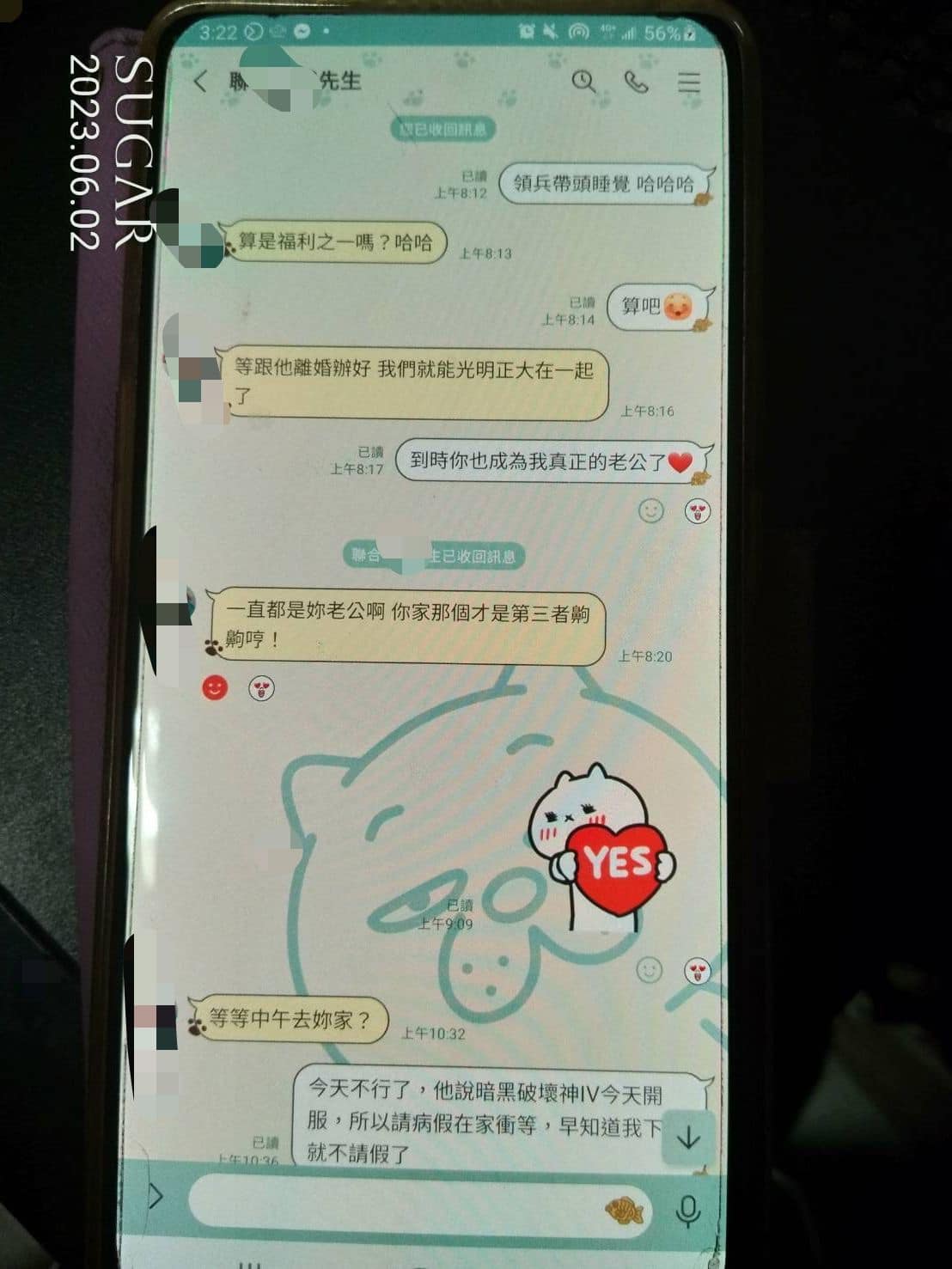 只見手機上的通訊軟體對話紀錄中,妻子正和另一名40多歲的男子聊天,兩人大談:「等離婚後就能正大光明在一起!」、「趁他還沒發現,保護好寶寶。」、「家裡那位才是第三者,我們才是真正的夫妻。」妻子甚至在對話曬出孕肚照,證據全都顯示出,老婆不但在外有了小王,還懷了小王的兒子,讓這位人夫瞬間恍然大悟:「原來我媽給你生子壓力讓你想離婚的藉口是假的,出軌才是真的!」