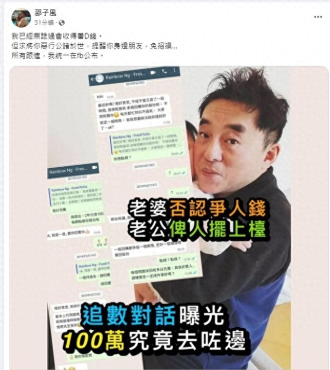 然而,在邵子風公開追債之前,外界看到的只是呂方夫婦的富貴生活。伍惠寶的公司卻已經岌岌可危,甚至不得不申請破產。原來,邵子風在2018年借給伍惠寶100萬港元,而從2019年開始追債,直到2020年才收回了30萬港元,還剩下70萬港元。對方對此置之不理,令邵子風非常憤怒,於是決定公開追債,甚至威脅要將此事曝光在電視台。