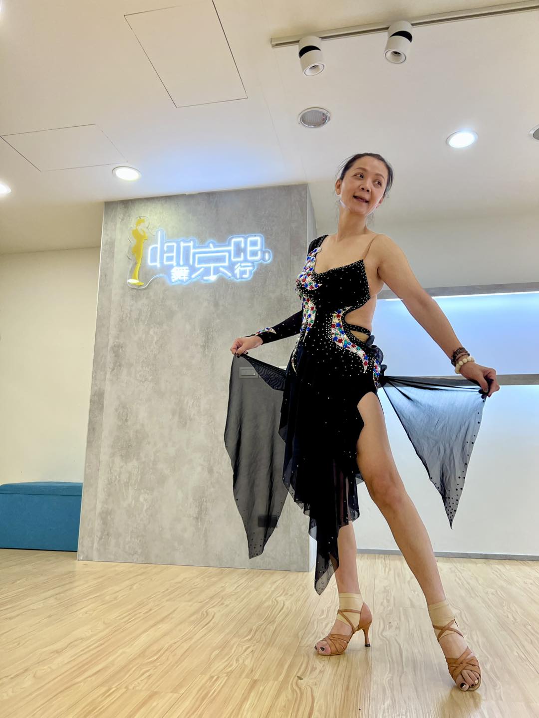 只見她分享多張練習時的照片,紀錄她曼妙的舞姿,一襲黑色舞衣有獨特意義,驚喜透露:「黑色是我的第一件舞衣,原本下擺是流蘇稍作修改後,又是另一種風格。」設計用白、紅、藍、綠的圓珠子做點綴,腰間簍空也讓曲線一覽無遺,對鏡自拍時,大露背設計讓人直呼太辣了!