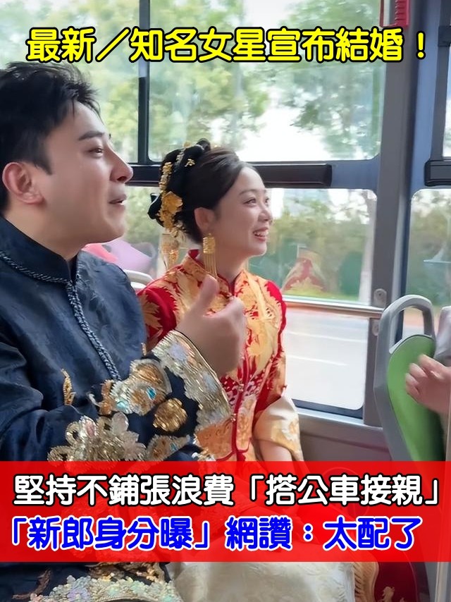知名女星宣布結婚!堅持不鋪張浪費「搭公車接親」 「新郎身分曝」網讚:太配了