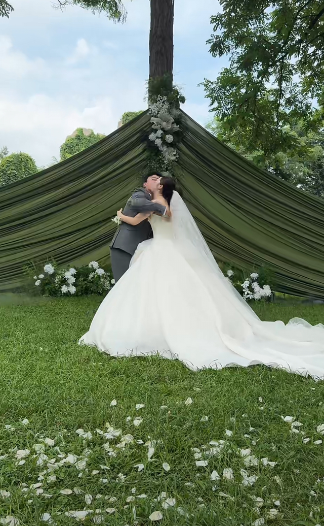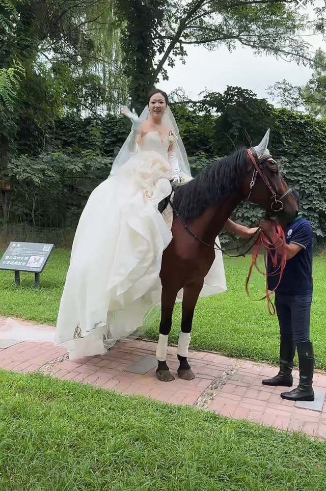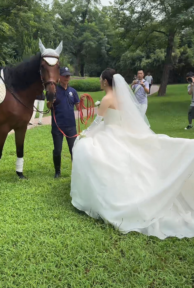 值得一提的是,婚禮前,齊如意騎上了駿馬在外候場,穿著婚紗的她坐在馬背上、宛如公主,又颯又漂亮。在家人和親友的見證下,他們彼此訴說著愛的誓言,齊如意感動落淚,場面溫馨又浪漫。一場有溫度的婚禮,滾燙的愛,熾熱的情,戶外的高溫也阻擋不了愛情的雙向奔赴。