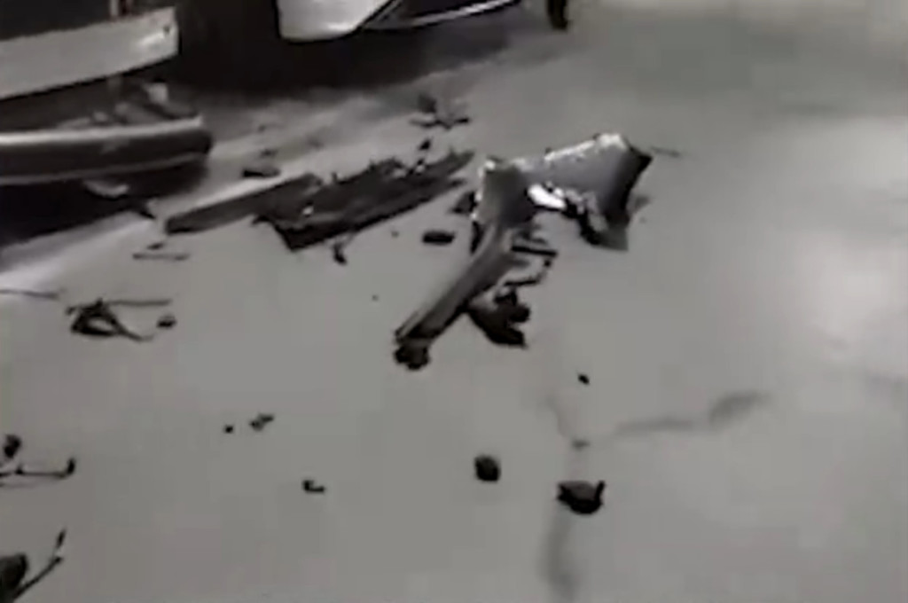 根據中媒《閃電新聞》報導,廣東省一名男子某天前往地下室停車場開車時,卻發現自己的愛車的車頭保險桿整塊被撞掉,左側車板和車燈也嚴重毀損,滿地都是破碎零件,現場慘不忍睹!車主以為是有人撞到還肇事逃逸,生氣打電話報警,沒想到警方調閱監視器卻發現令人哭笑不得的畫面!