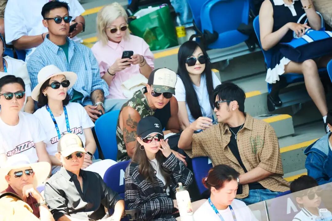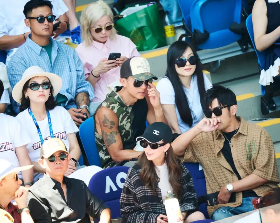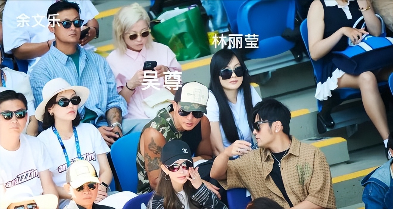 熱鬧還不止這一家。後排還能看到吳尊和林麗瑩,再往後還有余文樂。你看,這哪是普通觀賽,這更像娛樂圈網球愛好者的「線下聚會」。