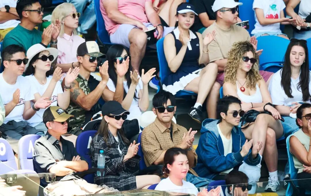 而且這次不是隨便逛街,是去澳網給中國球員張之臻加油。觀賽氛圍本來就容易被媒體捕捉,鏡頭掃到名人區很正常。