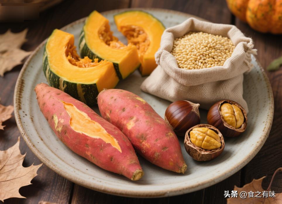 秋季脾胃運化減弱,黃色食物如南瓜、小米、板栗等,性溫味甘,富含膳食纖維與B族維生素,能溫中補虛、促進消化,增強脾胃功能,為身體儲備過冬能量,避免「貼秋膘」過度引發負擔。