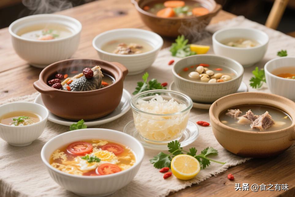 湯水以水為基底,融合食材精華,既能直接補充水分、潤養呼吸道與消化道,又能通過溫熱特性促進脾胃運化,幫助吸收營養、增強免疫力,同時調和寒熱平衡體質,是應對季節轉換、滋養身心的天然「潤補劑」。