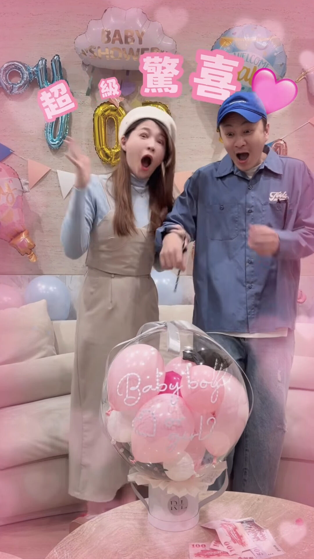 當小倆口一起刺破氣球的瞬間,真相終於揭曉——原來懷的是一對可愛的女寶寶!謝京穎在社群網站上開心發文寫道,不論男孩女孩都是他們的心肝寶貝,還俏皮地恭喜老公即將入住女子宿舍,更感謝大家滿滿的祝福與關愛。