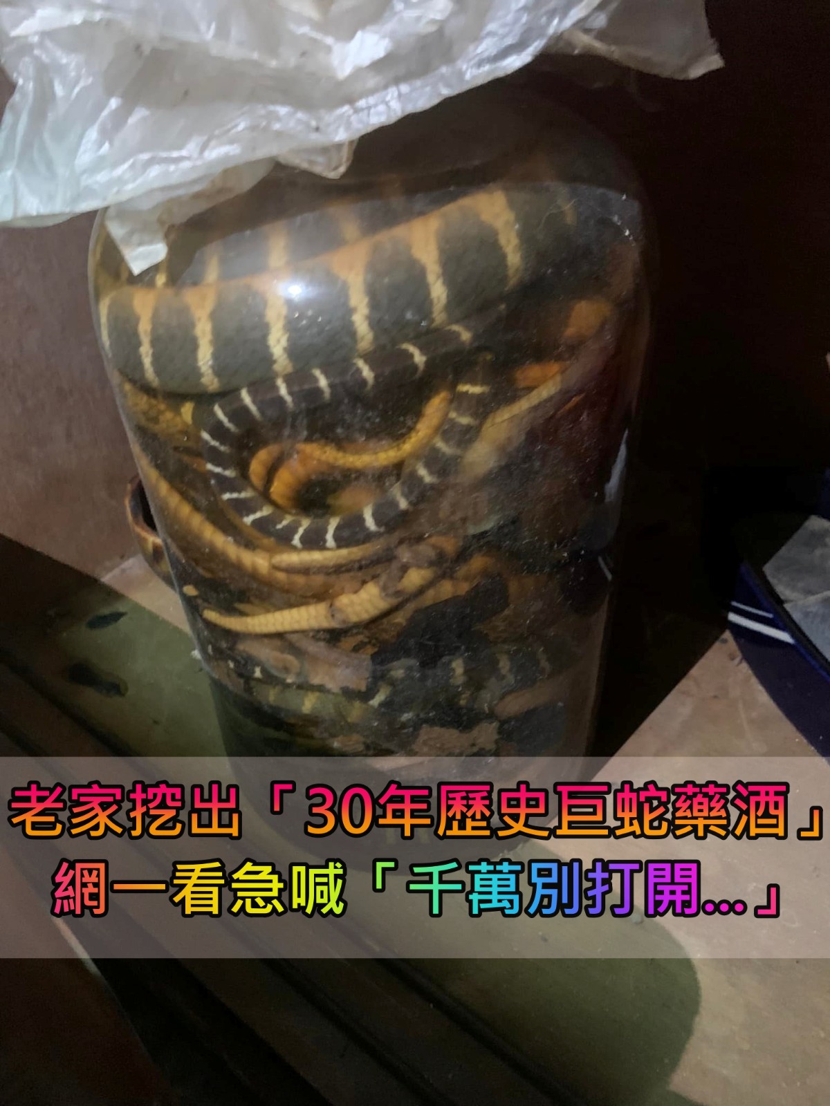 老家挖出「30年歷史藥酒」塞滿巨粗毒蛇 近看還發現「雨傘節、龜殼花」網友急喊:千萬別打開 Sabrina 2023-08-30 檢舉 網友看完照片後也紛紛表示:「1.開罐小心,不曉得會不會復活。2.要喝請確認口內無傷口,免得中毒疑慮。3.也許可以考慮賣了」、「太可怕了,這些都是有毒的嗎?」、「感覺比混打四劑疫苗還刺激」、「不能喝啊,喝了真的直接中毒送醫院,不要開玩笑」、「可以喝看看!結果可能兩種!局部硬!全身硬!全身硬是一輩子」、「確定是酒嗎,說不定是福馬林」(圖片來源:爆廢公社)真的看起來好可怕...來源:爆廢公社 Advertisements 回首頁 2/2 Advertisements 猜你會喜歡 和豬當室友~一晚4萬「豪華豬景房」橫空出世!隔天退房「還能帶1頭豬回家」網驚奇:現在流行睡豬舍? 牛牛新時尚!在路邊看到「牛穿藍白夾腳拖」超驚奇 神網友曝「不只是為了好看」:50年前就有了 編輯精選推薦 More + 除濕機開24小時!她一天倒3次水「濕度降不了」地板還返潮 「網友祭出大絕招」:別傻傻再買一台 王力宏驚喜宣布「再度當爸爸」當場激動落淚! 花藝界的小仙女!夢幻「人魚姬玫瑰花束」粉嫩漸層美翻 另一款「空靈鬱金香款式」情人節超必備❤️ 高三生久咳不愈!去醫院照X光竟是「這器官長在胸腔」 很多人忽略了!保單「這1點沒注意」恐白繳30年保費 親自抱下女兒遺體!郭主義喪女5年「鼓起勇氣做一事」 潰堤曝「心碎畫面」:永遠做妳驕傲的老爸 男子突發腦出血走了!醫生怒斥:「吃降壓藥時候,沒有注意這3點!」 全遣送中國!台灣873名詐騙犯慘了「外交部出面回應」 準媽媽「讓2萬隻蜜蜂爬滿孕肚」拍獨特孕婦寫真!預產期前6天「寶寶卻不動了」:只被螫3次... 6歲童長膿癬永久禿頭!醫檢查驚「兇手竟是牠」小孩易感染 85歲失智父身亡!林葉亭突宣布「皈依佛門」 遇大師「開示一番話」忍不住淚崩 勞保新制「年資不足15年」也能月領!1招合併補上「退休也能領到老」 快訊/桃園驚傳「停課92班」1病毒爆發 疾管署曝:「已9例死亡」 冬季猝死高發期!醫生示警7類人「容易在睡夢中走了」 猝死前有警訊「中2項」馬上檢查 快訊/爆6.7強震!氣象專家警告「第一波海嘯抵達了」 館長臥推失誤遭「槓鈴重擊壓胸」身亡!監視器曝光「生前畫面」令人震驚 把握周末回暖!這2天恐挑戰「首波大陸冷氣團」 專家曝:「最低下探12度」 快訊/知名主持人「驚傳陳屍家中」死因曝光 前一晚才正常主持 雲端發票「少做1步驟」他慘失1000萬!很多人都沒做 27歲男每天喝7、8瓶!走路掰咖去檢查「骨頭全壞死了」 衣服從來不重複!巧手媽「天天替女兒換上蘿莉裝」超華麗 正面一轉「精緻五官+韓妞時裝」Q翻天❤️ 50歲男突失智!醫揪出元兇「保溫杯害鉛中毒」 不到一年走了急籲:「7種飲料不能裝」 膽固醇飆260!醫生建議「每天吃1水果」半顆就夠 48歲男子照做「三個月後擺脫藥物」找回健康 不菸不酒又強壯!年輕男肩膀痛「推拿復健都沒用」 一照是「10公分腫瘤已癌末」醫:僅一招可保命 快訊/告別週末回暖!週一再變天「全台濕冷」 入冬最強冷空氣「這天下探10度」直逼冷氣團