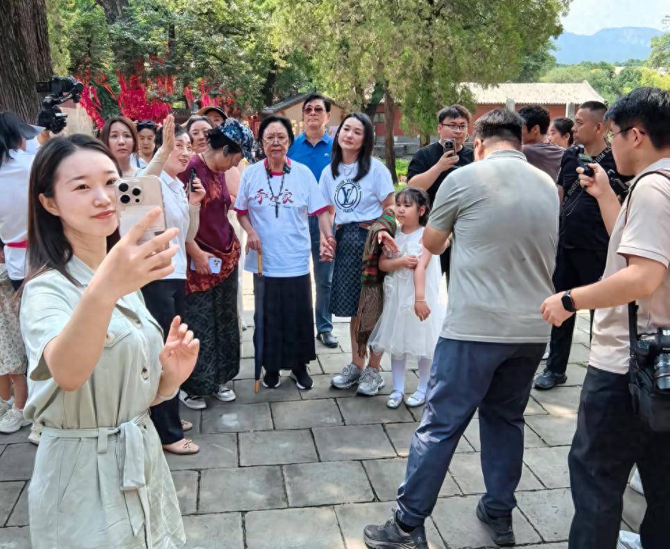 當得知斯琴高娃老師光臨時,許多路人紛紛主動上前合影留念。儘管現場圍觀的人群逐漸增多,斯琴高娃全然不受干擾,仍然專註傾聽導遊的講解。