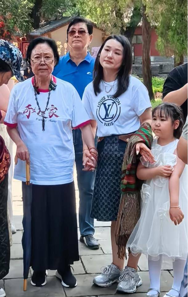 斯琴高娃身著白色短袖和黑色長裙,看起來比以往瘦了許多,也顯得更為蒼老。同時,她的同行還包括一位導遊,負責講解。