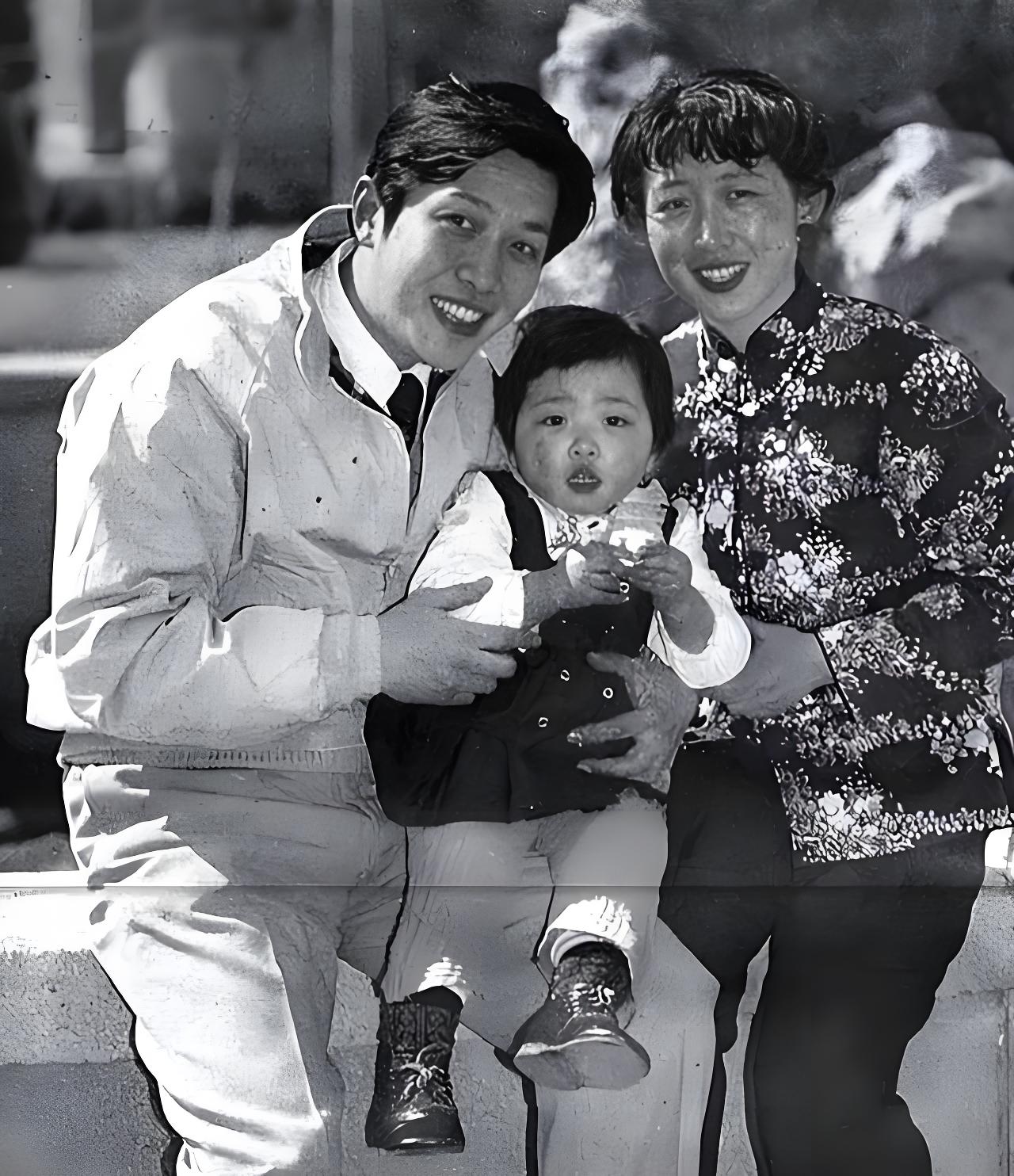1983年,兩人的女兒出生,那時一家三口多麼美滿幸福。初為人父的唐國強抱著孩子,身旁有家人相伴,三人都面帶笑意。