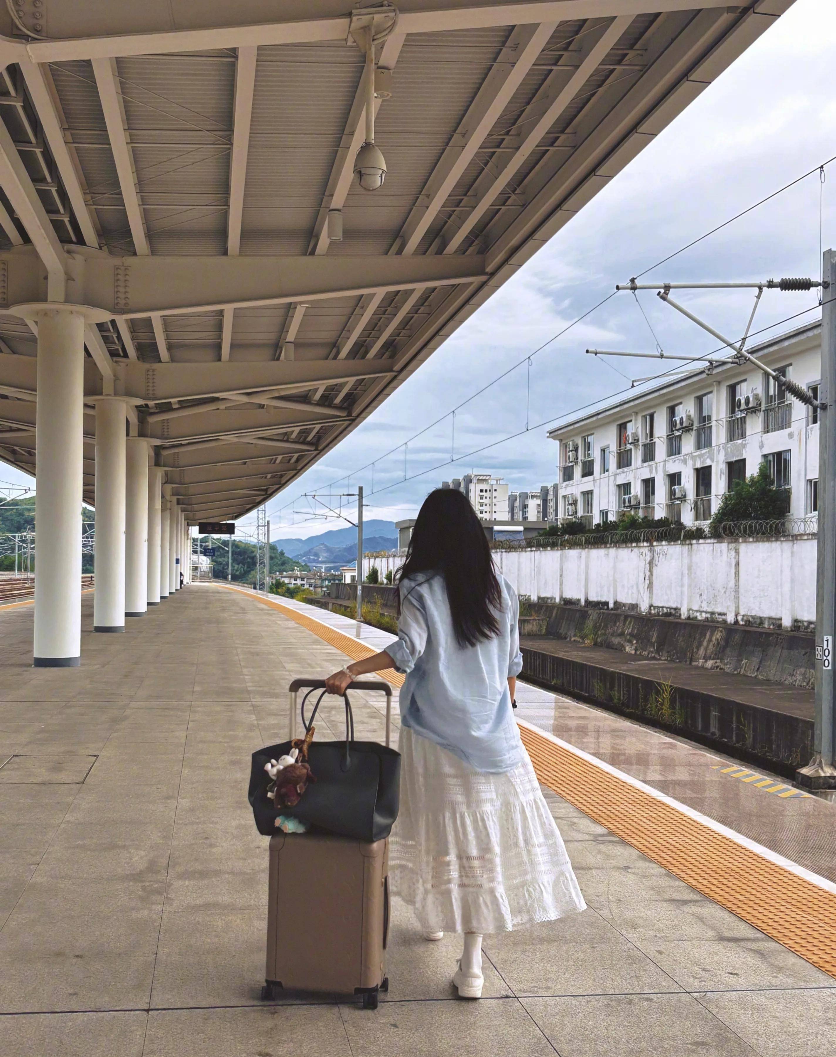 這組照片為蔣欣結束在福建12天度假模式的臨別留念,照片拍攝地點位於福建省南平市延平區延平站。