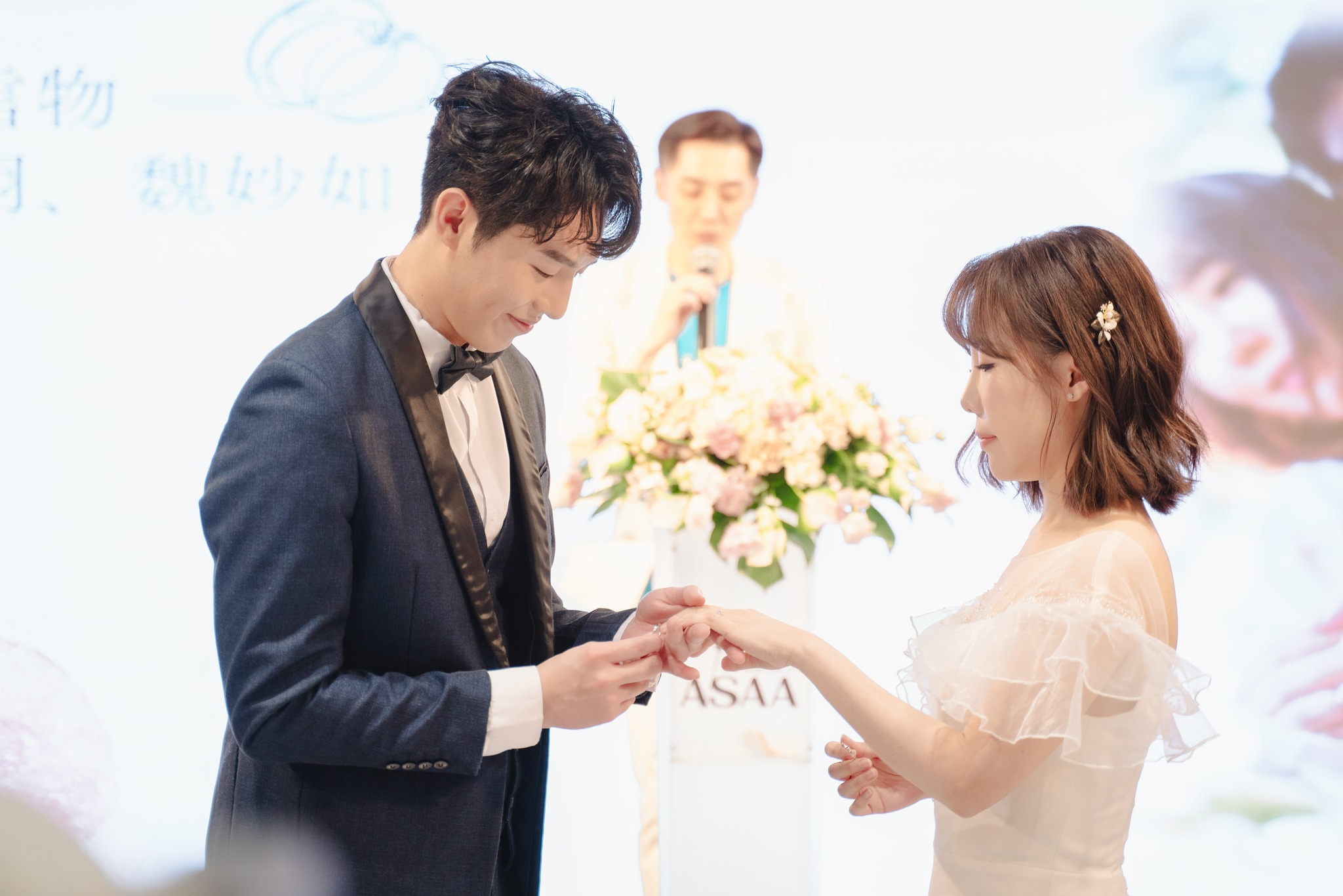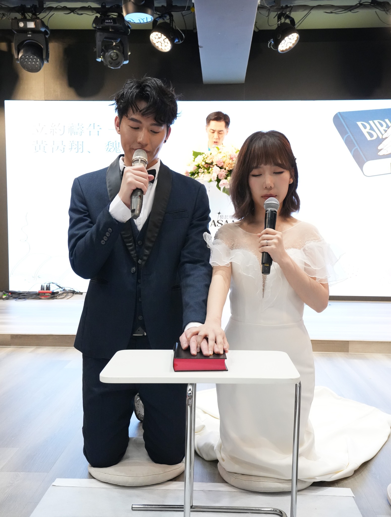 從照片中可以看到,魏妙如身穿純白低胸禮服,展現出凹凸有致的身材,臉上也洋溢著幸福,她與老公甜蜜交換戒指,兩人將雙手放在聖經上,甜蜜完成儀式,大批網友看了後,也紛紛祝新婚小倆口:「祝福你們永浴在主愛中」、「恭喜」、「祝白頭偕老」!