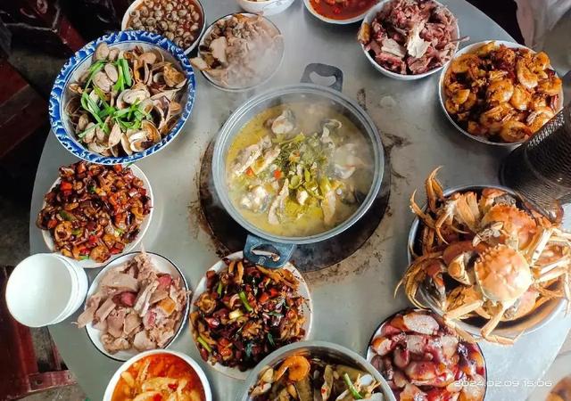 我再看餐桌上,擺了滿滿一桌菜,有魚、有蝦、有海鮮,還有各種丸子,蔬菜,應有盡有。